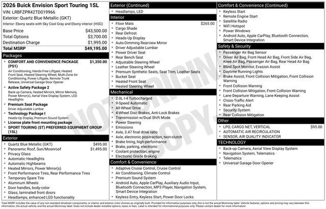All rebates to dealer. All prior sales excluded. In stock units only. Pricing and information are subject to dealer verification for accuracy. Special APR offers are based on approved tier 1 credit through GM Financial. Leases include 10K miles per year with $0.25 per mile over penalty. Purchase payment based on tier credit through preferred lender. Lease payment based on approved tier 1 credit through GM Financial. Payment includes title, registration and bank fees. Payment excludes tax and document fee. Price excludes tax, title, registration and document fee. No security deposit required. $395 disposition fee for GM Financial. Residency restrictions may apply. While we make every effort to prevent pricing errors, key stroke and human errors do occur. Please contact dealer at 740-474-3138 for more information. Factory MSRP: $49,195 Price includes: $500 - Buick GMC Bonus Cash. Exp. 04/30/2026