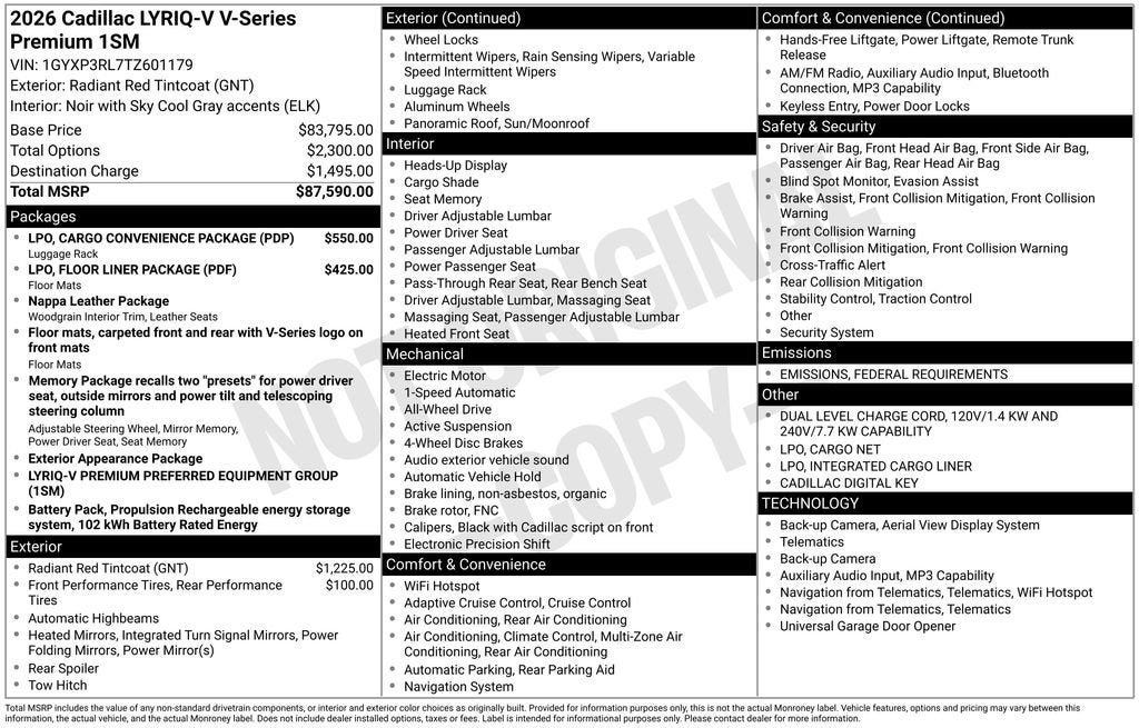 - Warranty: <<< Preliminary 2026 Warranty >>>