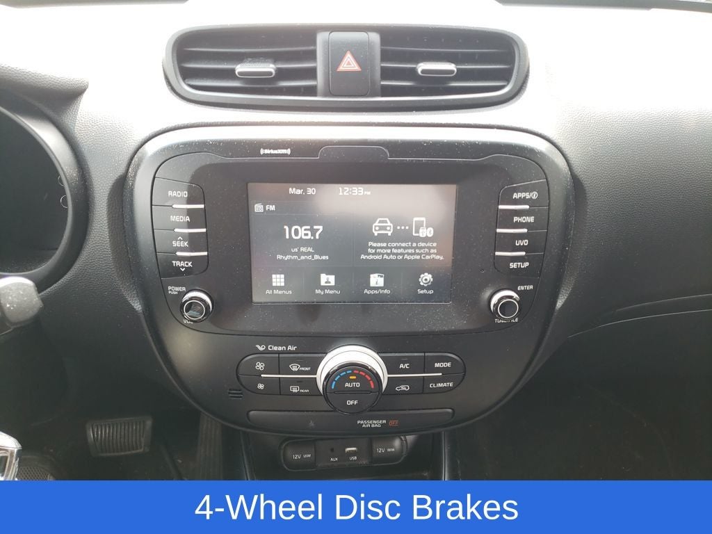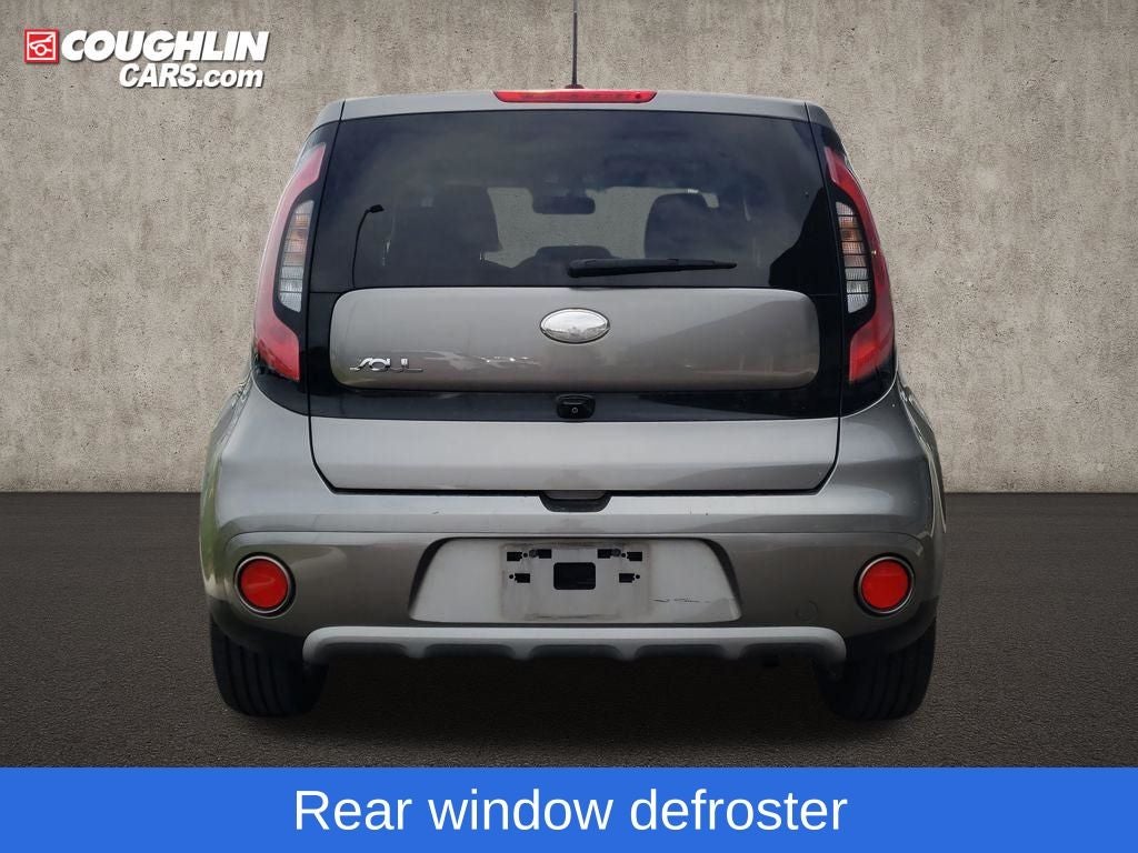 Titanium Gray 2019 Kia Soul Plus FWD 6-Speed Automatic with Sportmatic I4 Soul Plus, 4D Hatchback, I4, 6-Speed Automatic with Sportmatic, FWD, Titanium Gray, Black Cloth, 17 Alloy Wheels, 4-Wheel Disc Brakes, 6 Speakers, 6-Way Adjustable Driver's Seat, ABS brakes, Air Conditioning, Alloy wheels, AM/FM radio: SiriusXM, Apple CarPlay & Android Auto, Automatic temperature control, Brake assist, Bumpers: body-color, Carpeted Floor Mat, Cloth Seat Trim, Driver door bin, Driver vanity mirror, Dual front impact airbags, Dual front side impact airbags, Electronic Stability Control, Emergency communication system, Exterior Parking Camera Rear, Front anti-roll bar, Front Bucket Seats, Front Center Armrest, Front fog lights, Front reading lights, Front wheel independent suspension, Fully automatic headlights, Heated door mirrors, Illuminated entry, Low tire pressure warning, Occupant sensing airbag, Outside temperature display, Overhead airbag, Overhead console, Panic alarm, Passenger door bin, Passenger vanity mirror, Power door mirrors, Power steering, Power windows, Radio: AM/FM/MP3 Audio System, Rear seat center armrest, Rear window defroster, Rear window wiper, Remote keyless entry, Speed control, Speed-sensing steering, Split folding rear seat, Steering wheel mounted audio controls, Tachometer, Telescoping steering wheel, Tilt steering wheel, Traction control, Trip computer, Variably intermittent wipers.