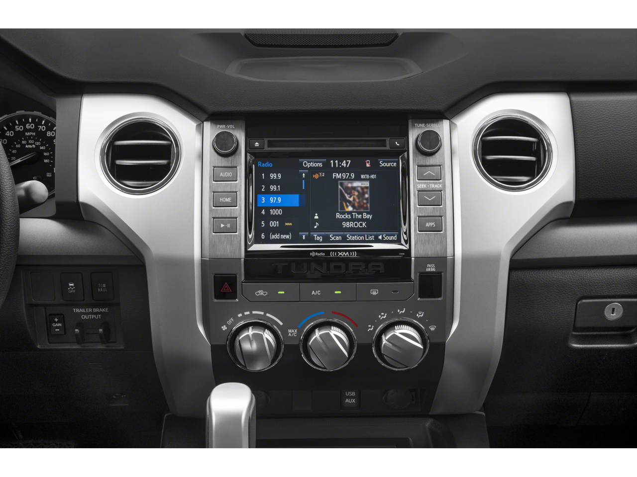 - Radio: Entune Audio Plus AM/FM/HD Radio w/CD -inc: MP3/WMA playback capability, 6 speakers, 7" high-resolution touch-screen display, auxiliary audio jack, USB media port, Bluetooth hands-free phone capability w/Scout GPS Link app, advanced voice recognition, phone book access and music streaming and Siri Eyes Free, SIRIUSXM Satellite Radio, complimentary SiriusXM All Access 90-day trial subscription