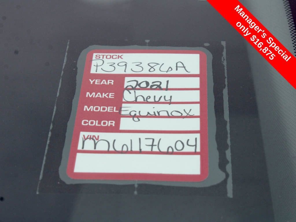 Mosaic Black Metallic 2021 Chevrolet Equinox LS CARFAX One-Owner. Odometer is 12646 miles below market average! 26/31 City/Highway MPGAwards:* 2021 IIHS Top Safety Pick with specific headlights Please call or e-mail first for the best and quickest information. Visit www.coughlinpataskala.com to see more of this store’s new and used vehicle inventory for sale. Price excludes tax, title, license and document fee. While we make every effort to prevent pricing errors, key stroke and human errors do occur. Please contact dealer for details.