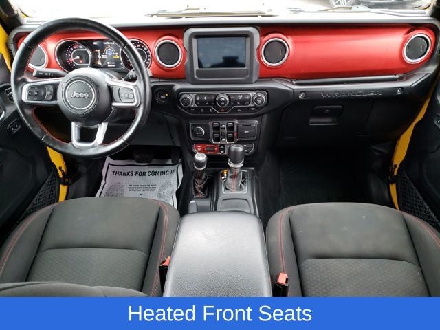 Wrangler Unlimited Rubicon, 4D Sport Utility, 2.0L I4 DOHC, 8-Speed Automatic, 4WD, Baja Yellow Clearcoat, Black Cloth, 240 Amp Alternator, 7 & 4 Pin Wiring Harness, 700 Amp Maintenance Free Battery, Auxiliary Switches, Class II Receiver Hitch, Cold Weather Group, Heated Front Seats, Heated Steering Wheel, Quick Order Package 22R, Trailer Tow & HD Electrical Group, 4-Wheel Disc Brakes, 4.10 Rear Axle Ratio, 8 Speakers, ABS brakes, Air Conditioning, Alloy wheels, AM/FM radio: SiriusXM, Apple CarPlay/Android Auto, Automatic temperature control, Aux Battery, Black 3-Piece Hard Top, Brake assist, Compass, Delay-off headlights, Driver door bin, Driver vanity mirror, Dual front impact airbags, Dual front side impact airbags, Electronic Stability Control, Freedom Panel Storage Bag, Front anti-roll bar, Front Bucket Seats, Front Center Armrest w/Storage, Front dual zone A/C, Front fog lights, Front License Plate Bracket, Front reading lights, Fully automatic headlights, Garage door transmitter, Heated door mirrors, Illuminated entry, Integrated roll-over protection, Leather steering wheel, Low tire pressure warning, MOPAR All-Weather Floor Mats (DISC), MOPAR Solid Sunbonnet Top, No Soft Top, Non-Lock Fuel Cap w/o Discriminator, Occupant sensing airbag, Outside temperature display, Panic alarm, ParkView Rear Back-Up Camera, Passenger door bin, Passenger vanity mirror, Performance Suspension, Power door mirrors, Power steering, Power windows, Premium Cloth Low-Back Bucket Seats, Radio data system, Radio: Uconnect 4 w/7 Display, Rear anti-roll bar, Rear reading lights, Rear Window Defroster, Rear Window Wiper/Washer, Remote keyless entry, Remote Start System, Security system, Speed control, Split folding rear seat, Steering wheel mounted audio controls, Stop-Start Dual Battery System, Tachometer, Telescoping steering wheel, Tilt steering wheel, Traction control, Trip computer, Variably intermittent wipers, Voltmeter, Wheels: 17 x 7.5 Machined w/Black Pockets, Wrangler Unlimited Rubicon, 4D Sport Utility, 2.0L I4 DOHC, 8-Speed Automatic, 4WD, Baja Yellow Clearcoat, Black Cloth, 240 Amp Alternator, 7 & 4 Pin Wiring Harness, 700 Amp Maintenance Free Battery, Auxiliary Switches, Class II Receiver Hitch, Cold Weather Group, Heated Front Seats, Heated Steering Wheel, Quick Order Package 22R, Trailer Tow & HD Electrical Group.