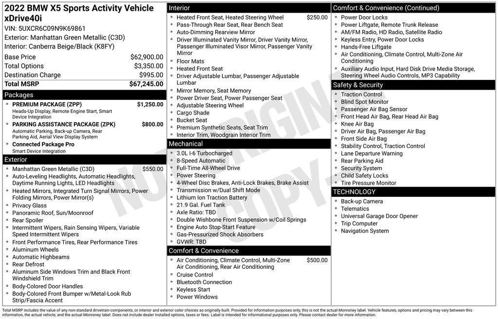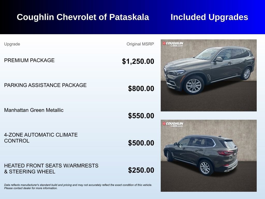 Manhattan Green Metallic 2022 BMW X5 xDrive40iPlease call or e-mail first for the best and quickest information. Visit www.coughlinpataskala.com to see more of this store’s new and used vehicle inventory for sale. Price excludes tax, title, license and document fee. While we make every effort to prevent pricing errors, key stroke and human errors do occur. Please contact dealer for details.