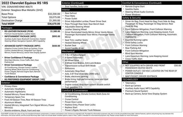 AWD, Adaptive Cruise Control, Advanced Safety Package, Bose Premium 7-Speaker Audio System Feature, Driver Seatback Map Pocket, HD Surround Vision, Outside Heated Power Adjustable Mirrors, Perforated Leather-Appointed Seat Trim, Premium audio system: Chevrolet Infotainment 3, Radio: Chevrolet Infotainment 3 Plus System w/Navi, RS Leather Package.