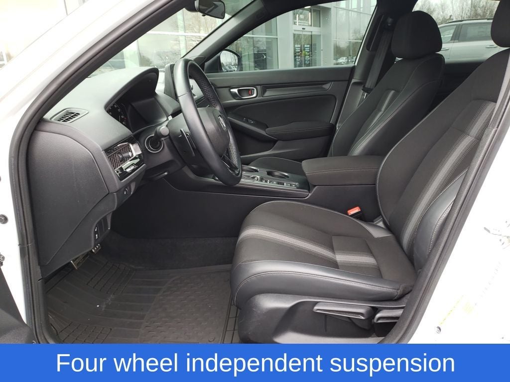 Platinum White Pearl 2022 Honda Civic Sport FWD CVT 2.0L I4 DOHC 16V i-VTEC Black w/Cloth Seat Trim, 4-Wheel Disc Brakes, 8 Speakers, ABS brakes, Adaptive Cruise Control: Adaptive Cruise Control (ACC) with Low-Speed Follow, Air Conditioning, Alloy wheels, AM/FM radio, Apple CarPlay/Android Auto, Auto High-beam Headlights, Automatic temperature control, Brake assist, Bumpers: body-color, Cloth Seat Trim, Delay-off headlights, Driver door bin, Driver vanity mirror, Dual front impact airbags, Dual front side impact airbags, Electronic Stability Control, Emergency communication system: HondaLink, Exterior Parking Camera Rear, Forward collision: Collision Mitigation Braking System (CMBS) + FCW mitigation, Four wheel independent suspension, Front anti-roll bar, Front Bucket Seats, Front Center Armrest, Front reading lights, Fully automatic headlights, Illuminated entry, Knee airbag, Leather Shift Knob, Leather steering wheel, Low tire pressure warning, Occupant sensing airbag, Outside temperature display, Overhead airbag, Panic alarm, Passenger door bin, Passenger vanity mirror, Power door mirrors, Power steering, Power windows, Radio data system, Radio: 180-Watt AM/FM Audio System, Rear anti-roll bar, Rear side impact airbag, Rear window defroster, Remote keyless entry, Security system, Speed control, Speed-sensing steering, Steering wheel mounted audio controls, Tachometer, Telescoping steering wheel, Tilt steering wheel, Traction control, Trip computer, Wheels: 18 Gloss Black Alloy.