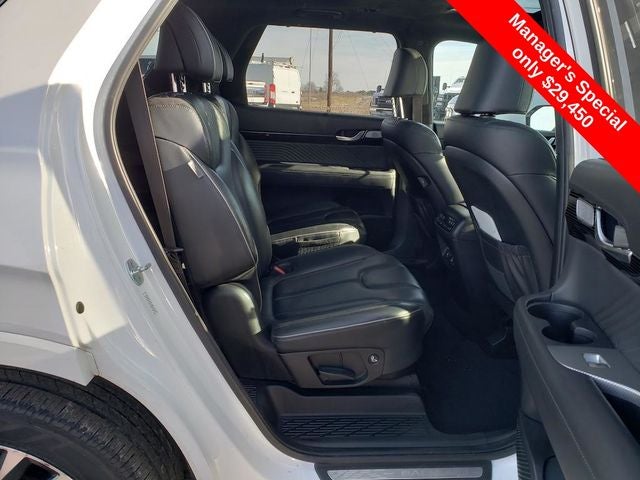 Navigation System, Option Group 01, 12 Speakers, 3.648 Axle Ratio, 3rd row seats: split-bench, 4-Wheel Disc Brakes, ABS brakes, Air Conditioning, Alloy wheels, AM/FM radio: SiriusXM, Apple CarPlay & Android Auto, Auto High-beam Headlights, Auto-dimming door mirrors, Auto-dimming Rear-View mirror, Auto-leveling suspension, Automatic temperature control, Brake assist, Bumpers: body-color, Cargo Cover/Screen, Cargo Net, Cargo Tray, Carpeted Floor Mats, Compass, Delay-off headlights, Driver door bin, Driver vanity mirror, Dual front impact airbags, Dual front side impact airbags, Electronic Stability Control, Emergency communication system: Blue Link Connected Car Service (3-year complimentary subscription), Exterior Parking Camera Rear, Four wheel independent suspension, Front anti-roll bar, Front Bucket Seats, Front Center Armrest, Front dual zone A/C, Front reading lights, Fully automatic headlights, Garage door transmitter: HomeLink, harman/kardon® Speakers, Heads-Up Display, Heated & Ventilated Front Bucket Seats, Heated door mirrors, Heated front seats, Heated rear seats, Heated steering wheel, Illuminated entry, Knee airbag, Low tire pressure warning, Memory seat, Occupant sensing airbag, Outside temperature display, Overhead airbag, Overhead console, Panic alarm, Passenger door bin, Passenger vanity mirror, Power door mirrors, Power driver seat, Power Liftgate, Power moonroof, Power passenger seat, Power steering, Power windows, Premium Nappa Leather Seat Trim, Radio data system, Radio: AM/FM/MP3 Premium Audio System, Rain sensing wipers, Rear air conditioning, Rear anti-roll bar, Rear audio controls, Rear reading lights, Rear side impact airbag, Rear window defroster, Rear window wiper, Reclining 3rd row seat, Remote keyless entry, Security system, Speed control, Speed-sensing steering, Split folding rear seat, Spoiler, Steering wheel mounted audio controls, Tachometer, Telescoping steering wheel, Tilt steering wheel, Traction control, Trip computer, Turn signal indicator mirrors, Variably intermittent wipers, Ventilated front seats, Ventilated rear seats, Wheel Locks, Wheels: 20 x 7.5J Calligraphy Exclusive Alloy, Navigation System, Option Group 01.