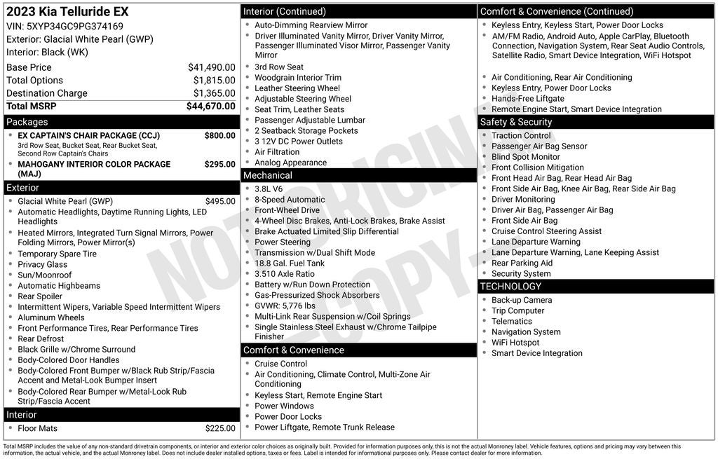 - Vehicle Name: Kia Telluride
