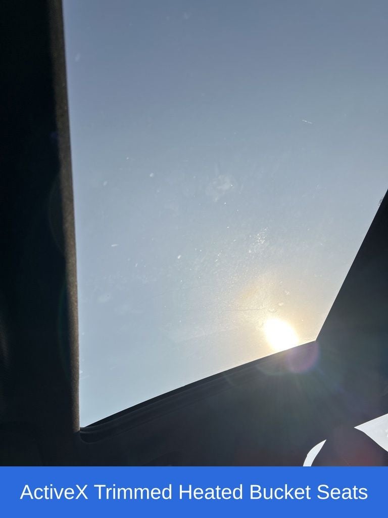 Beyond the impressive list of custom features, this Edge ST Line also comes equipped with a panoramic vista roof, a heated steering wheel, and premium gloss black-painted aluminum wheels, adding a touch of sophistication and style.
